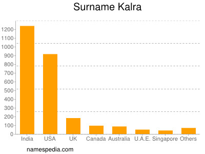 De achternaam Kalra wordt minstens 2672 keer gebruikt in ten minste 27 landen.