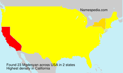 De voornaam Mgdesyan werd 5 keer gevonden in 1 verschillende landen. (USA)