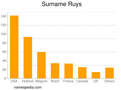 De achternaam Ruys wordt minstens 423 keer gebruikt in ten minste 14 landen.